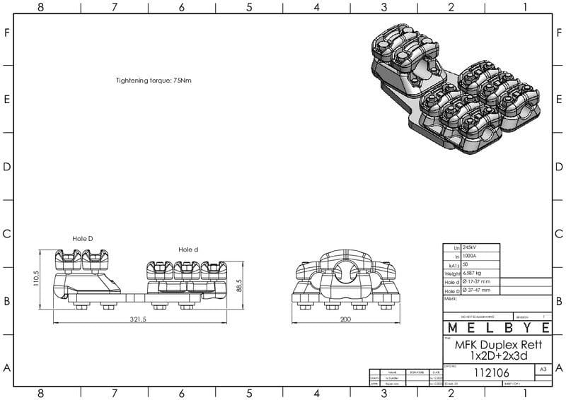 MELBYE - Pääteliitin - Dupl S 1x 37-47 2D 2x17-37 3d