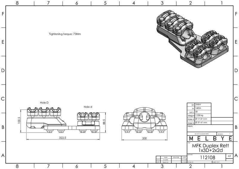 MELBYE - Pääteliitin - Dupl S 1x37-47 3D 2x17-37 2d