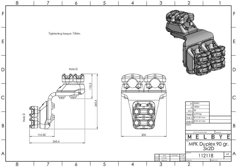 MELBYE - Pääteliitin - Duplex 90° 3 x 37-47mm 2D