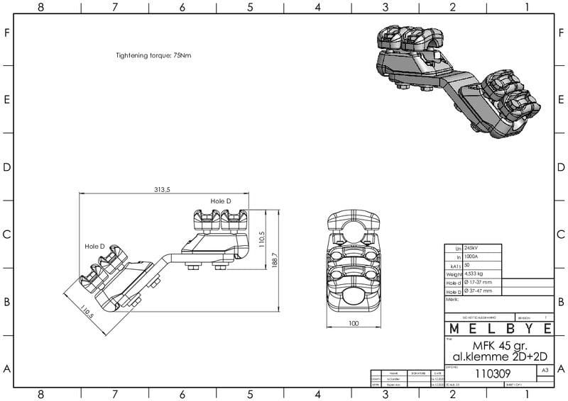 MELBYE - Pääteliitin - Päätel. 45° 2D+2D 37-47/37-47