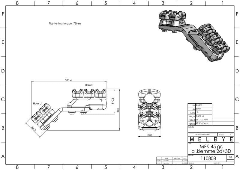 MELBYE - Pääteliitin - Päätel. 45° 3d+3D 17-37/37-47