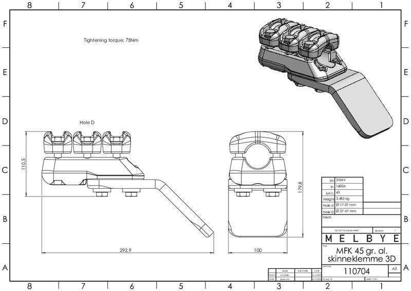 MELBYE - Pääteliitin - Päätel.45° johd-kok.k.3D 37-47