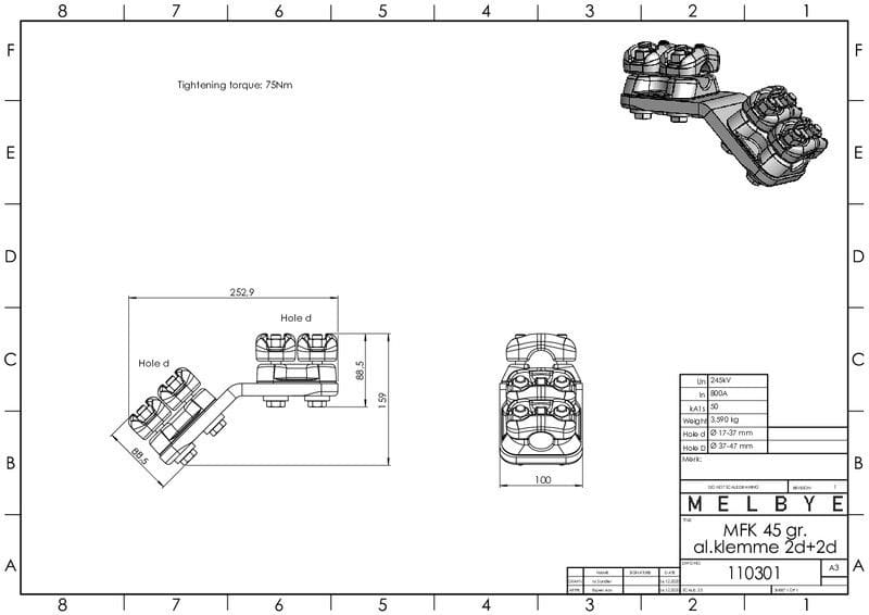 MELBYE - Pääteliitin - Päätel. 45°2d+2d 17-37/17-37