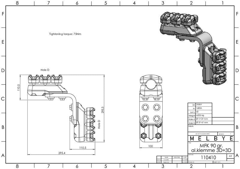 MELBYE - Pääteliitin - Päätel. 90° 3D+3D 37-47/37-47