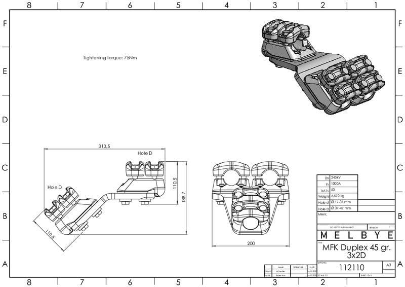 MELBYE - Pääteliitin - Päätel.Dupl 45° 3x37-47mm 2D