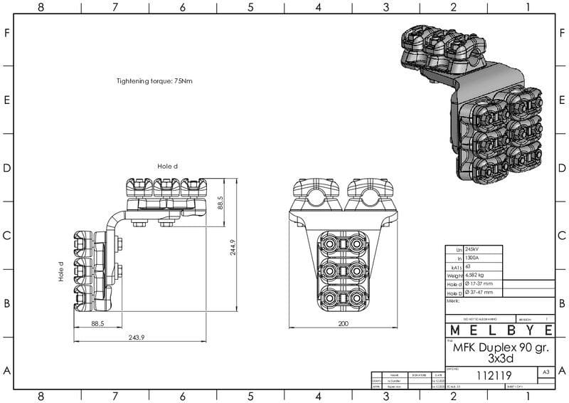 MELBYE - Pääteliitin - Päätel.Dupl 90° 3 x17-37mm 3d