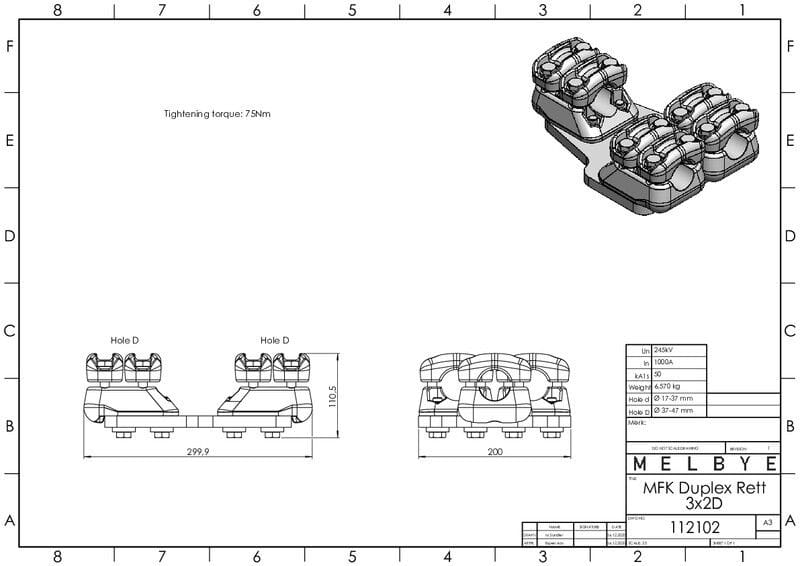 MELBYE - Pääteliitin - Päätel.Dupl Suora 3 x 37-47 2D