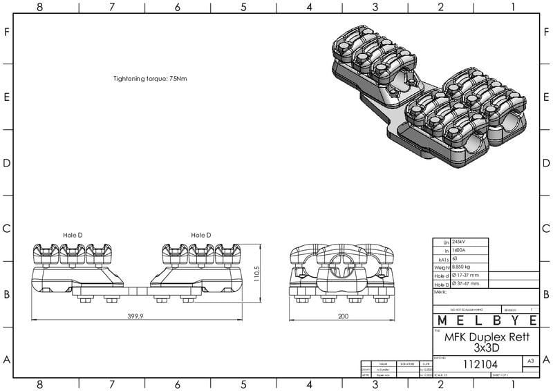 MELBYE - Pääteliitin - Päätel.Dupl Suora 3 x 37-47 3D
