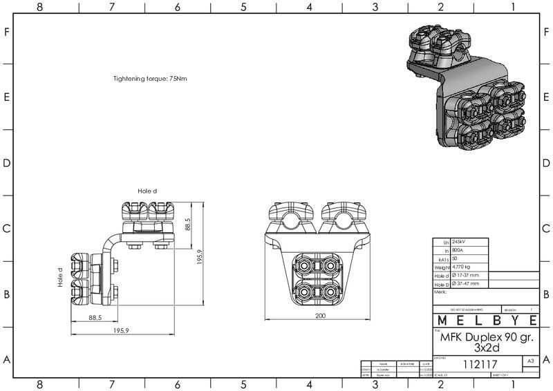 MELBYE - Pääteliitin - Päätel.Dupl90° 3 x 17-37mm 2d