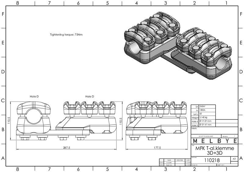 MELBYE - Pääteliitin - Pääteliit. 3D+3d 37-47/37-47mm
