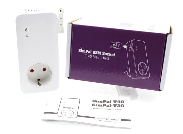 SimPal T40-V2 on etäohjattava GSM-pistorasia, joka on suunniteltu sähkölaitteiden käynnistämiseen ja poiskytkemiseen. Laitteen ohjaama verkkovirta saadaan kytkettyä matkapuhelimesta SMS- tekstiviestillä, puhelinsoitolla tai mobiilisovelluksella (apps). SimPal T40 on yhteensopiva kaikkien operaattorien SIM-korttien kanssa, eikä vaadi toimiakseen erillistä datasopimusta - puhe- ja tekstiviestipalvelut riittävät. Laite soveltuu sisätiloissa tapahtuvien koti-, mökki- ja toimistolaitteiden ohjaamiseen.