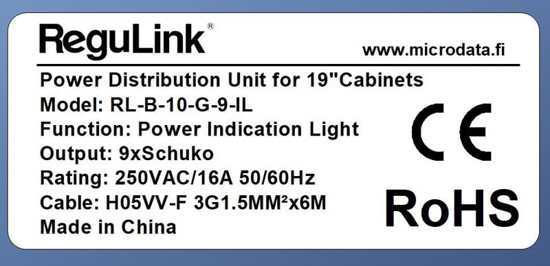 ReguLink RL-B-10-G-9-IL-6M on PDU virranjakeluyksikkö 19\" räkkikaappiin yhdeksällä suko-ulostulolla sekä virtaledillä. PDU-yksikön avulla saadaan syötettyä virta useammalle laitteelle. Tuotepakkaus sisältää 19\" asennusraudat sekä 4kpl korimutterisarjan.