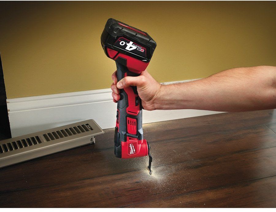 M18 monitoimityökalu. 12 nopeusasetusta 12 000-18 000 värähdystä/min Virtamittari akussa. Paino akun kanssa 1,7 kg. Mukanaadapteri, pistosahanterä, hionta-alusta, 5 x hiomapaperia, toimitetaan laatikossa ilman akkua ja laturia.