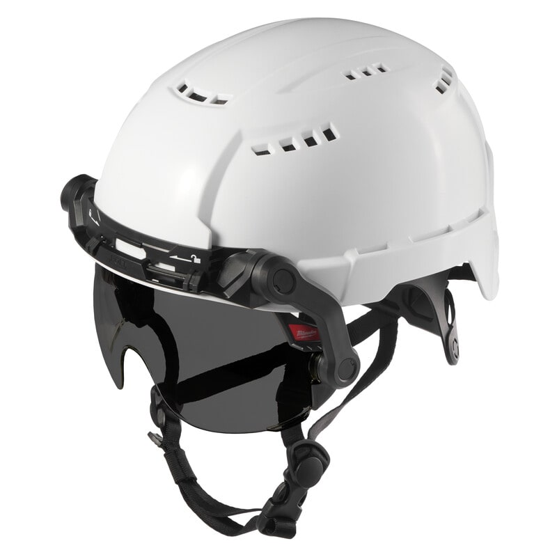MILWAUKEE® BOLT™ -Visiiri panoraamanäkökentällä. BOLT™-järjestelmä takaa yhteensopivuuden kypärän ja käyttöyhteystuotteen välillä helpon liitäntäjärjestelmän kautta - saatavilla laaja valikoima BOLT™-käyttöyhteystuotteita. Yhteensopiva BOLT™-kypärävalaisimen kanssa, jolloin kasvosuoja voidaan nostaa ylös vaikka valaisin olisi kiinnitettynä kypärään. Todella helppo käyttöönotto ja irrotus. Linssi on valmistettu polykarbonaatista. Linssi sertifioitu naarmuuntumattomaksi K-standardin EN166 mukaisesti. Linssi sertifioitu huurtumattomaksi N-standardin EN166 mukaisesti. Saatavilla 2 eri linssiväriä: kirkas ja sävytetty. Kompakti versio sisältää ohuemman ja kompaktimman muotoilun, yhteensopiva vain BOLT™ 200 -kypärän kanssa. Yleismallinen kasvosuoja voidaan liittää BOLT™ 100- ja BOLT™ 200 -kypäriin helpon liitäntäjärjestelmän ansiosta.. Sävytetyt kasvosuojat sisältävät kolme EN-standardia: EN166/EN170 & EN172. Kirkkaat kasvosuojat sisältävät kaksi EN-standardia: EN166 & EN170