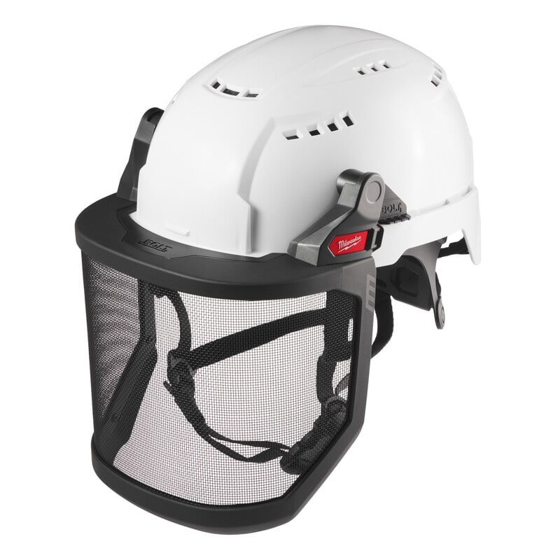 MILWAUKEE® BOLT™ -Verkkovisiiri. BOLT™-järjestelmä takaa yhteensopivuuden kypärän ja käyttöyhteystuotteen välillä helpon liitäntäjärjestelmän kautta - saatavilla laaja valikoima BOLT™-käyttöyhteystuotteita. Yhteensopiva BOLT™-kypärävalaisimen kanssa, jolloin kasvosuoja voidaan nostaa ylös vaikka valaisin olisi kiinnitettynä kypärään. Todella helppo käyttöönotto ja irrotus. Kompakti versio sisältää ohuemman ja kompaktimman muotoilun, yhteensopiva vain BOLT™ 200 -kypärän kanssa. Yleismallinen verkkovisiiri voidaan liittää BOLT™ 100- ja BOLT™ 200 -kypäriin helpon liitäntäjärjestelmän ansiosta. Verkkovisiirin iskunkestävyys on F standardin EN 1731 mukainen teräsverkko, jolloin verkkovisiiri on ihanteellinen ulkokäyttöön, puutarhanhoitoon ja huoltotöihin. Verkkovisiirissä on valonläpäisy > 60 %.