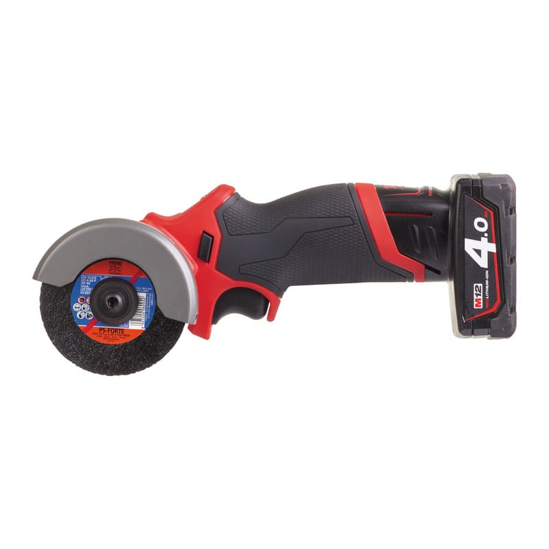 M12 suorakatkaisukone.76mm terä. 20 000 rpm. Virtamittari ja LED-valo.226mm.pitkä. 1,1 kg. 1x2,0Ah ja 1x4,0Ah akut, 40/80 min.laturi, metallikatkaisulaikka, karbidilaikka, timanttilaikka, säädeltävä leikkaussuoja, säädeltävä leikkaussuoja ja HD-salkku.