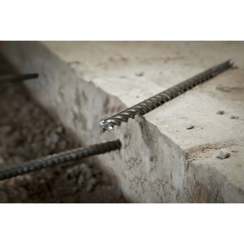 Keskityskärki porautuu suoraan ja tarkasti. Hitsattu täyskarbidikärki5-8 mm terissä nopeuttaa poraamista. 4 murtoterää kärjessä pulverisoivatmateriaalin tehokkaammin. Raudoitussuojat lisäävät kestävyyttäraudoitukseen osuessa. Uusi rungon muotoilu.