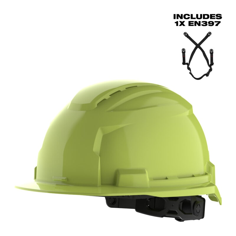 MILWAUKEE® BOLT™ 100 -suojakypärä - BOLT™-järjestelmä takaa yhteensopivuuden kypärän ja käyttöyhteystuotteen välillä helpon liitäntäjärjestelmän kautta. BOLT™ 100 -kypärät ovat yhteensopivia yleismallisten tarvikkeiden kanssa. Erittäin mukava ja helposti säädettävissä rattisäädön avulla. ABS-kuori tekee kypärästä kevyen käyttää. 6-pisteinen jousitus parantaa käyttömukavuutta. Vaihdettava, mukava hikinauha. Koko: 52 - 68 cm. 8 värivaihtoehtoa kiiltävällä viimeistelyllä: valkoinen, keltainen, oranssi, punainen, musta, vihreä, sininen ja Hi-Vis. Sertifioitu standardin EN 397:2012 mukaisesti ja valinnainen vaatimus sulille metalleille, äärimmäisille lämpötiloille -30°C asti, sivusuuntainen muodonmuutos (LD) ja sähköeristys 440 V a.c. (sähköeristys 440 V EN397:n mukaisesti vain umpimallissa) Sertifioitu standardin EN 50365:2002 mukaisesti Sähköluokka 0:n asennuksiin, joiden nimellisjännite on enintään 1000 V AC ja 1500 V DC (tuuletusaukollinen ja umpimalli)
