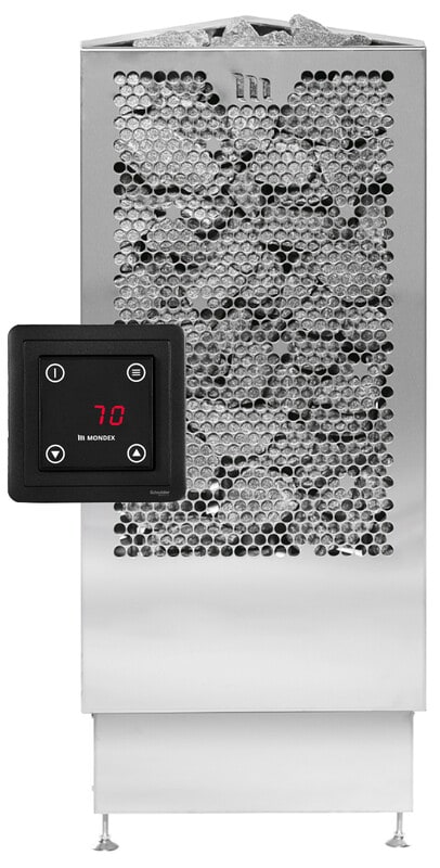 Aura on ulkoisella ohjaimella varustettu kulmakiuas. Voidaan asentaa suoraan paneeliseinään kiinni. Kaikki paino jaloilla, ei tarvitse lisävahvistuksia seinään. Integroitavissa myös lauderakenteisiin.
