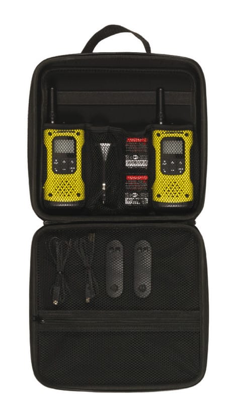 Vedenkestävä (IP67), kelluva ja laadukas PMR446-järjestelmän radiopuhelinsetti. 10 kilometrin kantama. Valittavana 8 kanavaa ja 121 lisäkoodia. Toimii mukana tulevalla akulla tai 3xAA paristolla (eivät sis. pakkaukseen). Mukana vyöklipsi (toimii myös pillinä), autolaturi, USB/ MicroUSB-latauskaapeli ja säilytyssalkku. Ominaisuudet mm. kaksitoiminen LED-taskulamppu (syttyy automaattisesti jos radiopuhelin putoaa veteen), handsfree-liitäntä, 20 soittoääntä, värinähälytys, ääniohjattu lähetys, kahden kanavan tarkkailutila, kuuntelutila (käytä kuten itkuhälytintä).
