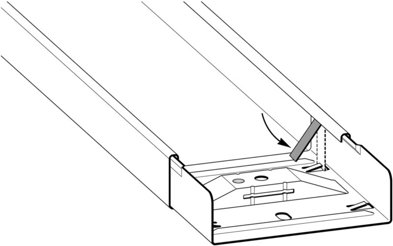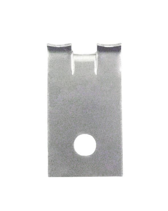 Käytetään 100 - 600 mm levyhyllyjen ja valaisinkiskojen jatkokappaleen lukitsemiseen. Asennus kiinnikkeen 2 tartuntahakasta jatkokappaleen reunaa vasten yläosan mennessä hyllyprofiilin kaareen.