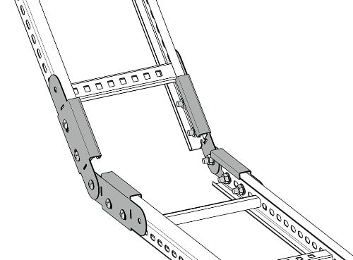 Monikäyttöisellä yleisnivelliitoskappaleella voit toteuttaa vertikaalinousut sekä -kulmat. Kaapelitikkaan nivelliitos napsautetaan liitoksen päälle tikkaiden ulkoreunaan, ja lukitaan paikoilleen asennusruuvisarjalla (2 kpl).Niveliä käytetään 4 kappaletta per liitos, ja ne liitetään yhteen asennusruuvisarjalla (14 673 42).