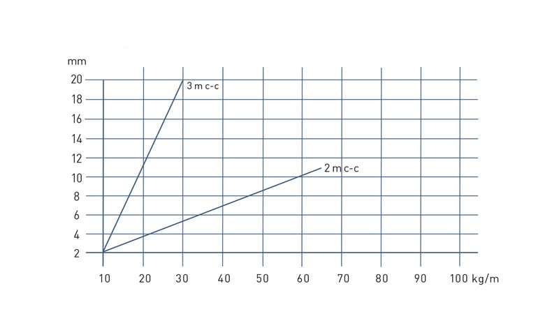 IEC 61537:n mukainen turvallinen työkuorma, kun tukiväli on 3,0 m.: