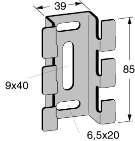 Seinäkiinnitin on tarkoitettu lankahyllyjen ripustamiseen seinälle, esim. vaaka- ja pystysuoraan. Tarkoitettu etupäässä leveyksille 75 ja 120 mm. Hyllyn lukitseminen tehdään taivuttamalla väkäsiä.