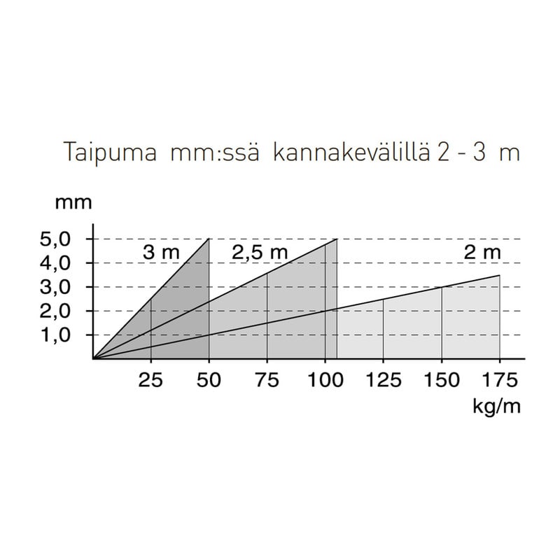 IEC 61537:n mukainen turvallinen työkuorma, kun tukiväli on 3,0 m.: