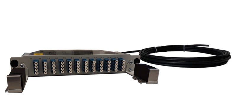 NAF1000 LC/- HBBX 48SML 5m. Yksimuoto häntäkaapeli, jonka pituus on 5m. Mikrokaapeli on valmiiksi päätetty NAF1000 paneeliin LC-UPC liittimin, joita on 48kpl. Toinen pää on avoin hitsausta varten.