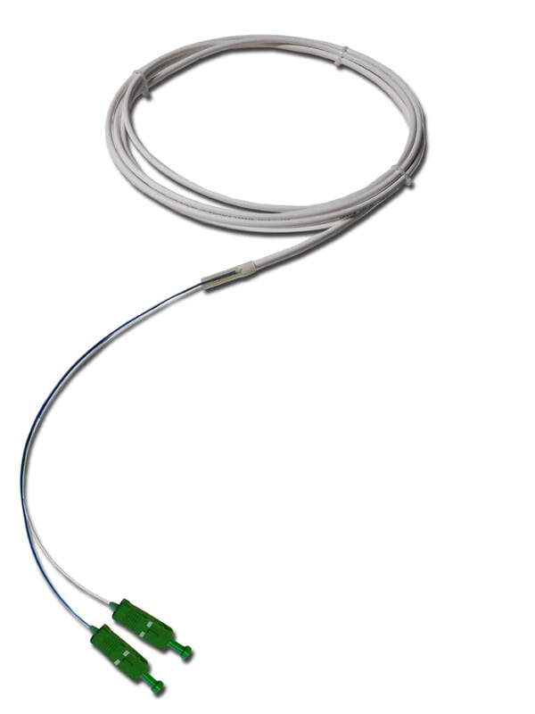 SC-APC liittimellä varustettu 2-kuituinen häntäkaapeli 30m 30-metrinen 2-kuituinen sisäulkokaapeli, jonka toisessa päässä on SC-APC liittimet asennettu. Toinen pää vapaa. Kaapelin väri valkoinen.