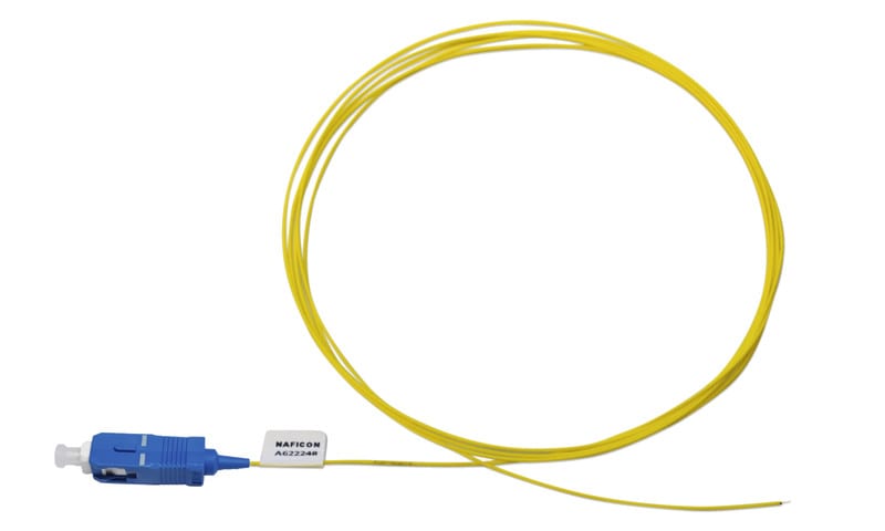 Yksimuoto häntäkuitu SC-UPC liittimellä. Toinen pää avoin hitsausta varten.