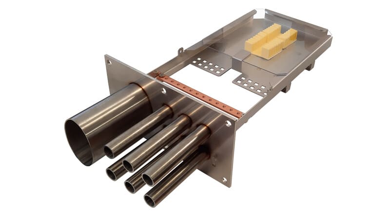 • Alaosan laipassa 7 läpivientiä, joista yksi on ovaalin malllinen ja kuudessa on 11mm sisähalkaisija. Ovaalin mallisessa läpiviennissä voi käyttää mekaanisia läpivientejä.