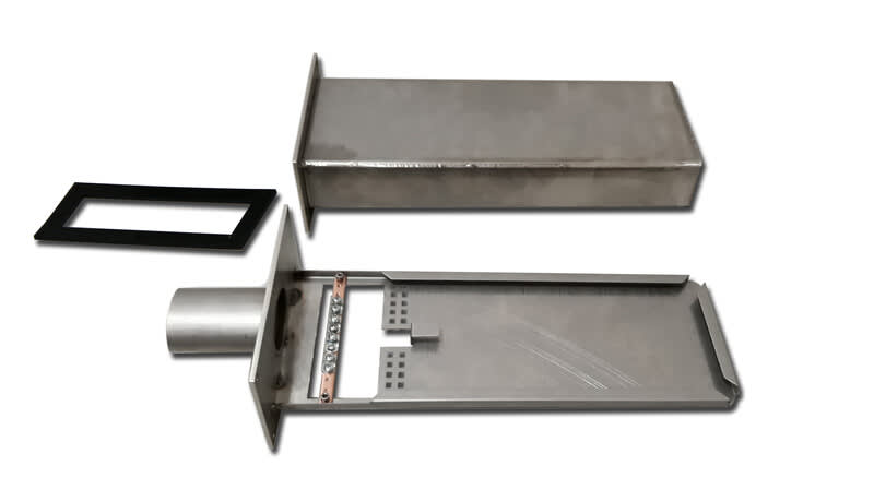 Kotelo on ns. huppujatkos koostuen alaosasta jatkoslevyineen sekäsuojakuoresta. 12-48 kuidun jatkamiseen. Koteloa voidaan käyttää kaapeleiden kylkiotoissa. Mitat kaapeliläpiviennin kanssa 489 x 182 x 94 mm. Alaosan laipassa yksi ovaali läpivienti. Materi Kotelo on ns. huppujatkos koostuen alaosasta jatkoslevyineen sekä suojakuoresta. 12-48 kuidun jatkamiseen. Koteloa voidaan käyttää kaapeleiden kylkiotoissa. Mitat kaapeliläpiviennin kanssa 489 x 182 x 94 mm. Alaosan laipassa yksi ovaali läpivienti. Materiaali happoterästä. Jatkoslevyn alapuolella on tarrakiinnitteiset muovituet katkaisemattomille kuituputkille. Tiiveys IP 68. Suunniteltu ja valmistettu Suomessa.