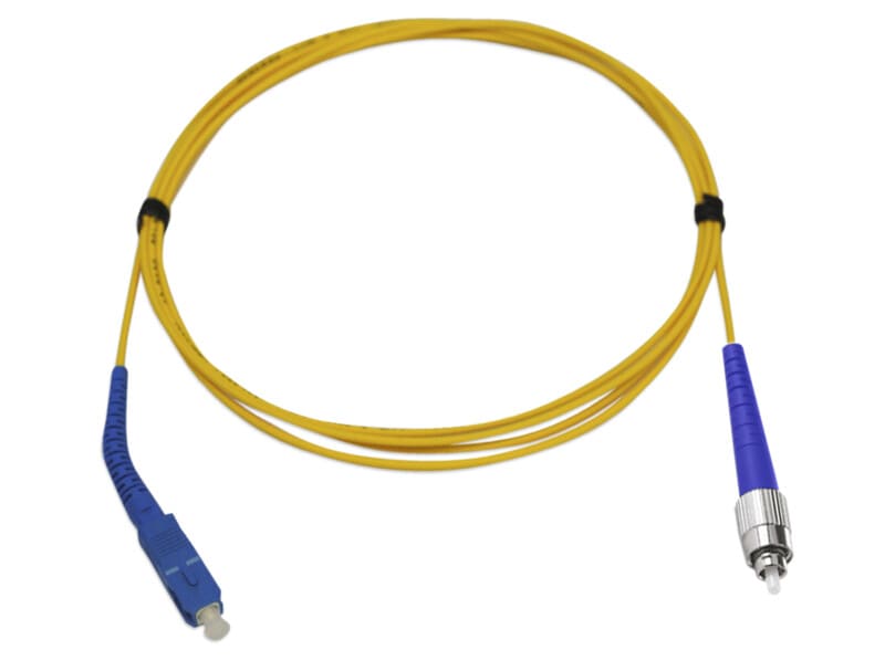 Yksimuoto kytkentäkaapeli, simplex, jossa toisessa päässä on SC-UPC liitin ja toisessa FC-UPC liitin.