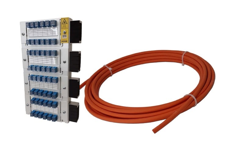 LL YJT SC/- FZOMSU-SD 48SML 50m. Yksimuoto sisä-/ulkokaapeli häntänä, jonka pituus on 50m. Kaapeli on valmiiksi päätetty LL YJT-koteloon SC-UPC liittimin, joita on 48kpl. Toinen pää on avoin hitsausta varten.