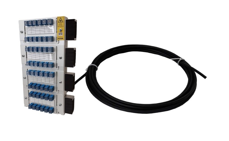 LL YJT SC/- HBBX 48SML 25m. Yksimuoto häntäkaapeli, jonka pituus on 25m. Mikrokaapeli on valmiiksi päätetty LL YJT-05 koteloon SC-UPC liittimin, joita on 48kpl. Toinen pää on avoin hitsausta varten.