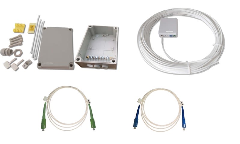 Paketti sisältää seuraavat tuotteet: 7264872 1kpl (NAF ulkopäätekotelo), 7268336 1kpl ( NAF SPK SC+SCA/- FTMSU 4SMT 30m), 7268335 1kpl ( SC/SC FMS 1SMT WHITE) ja 7268334 1kpl (SCA/SCA FMS 1SMT 1m WHITE)