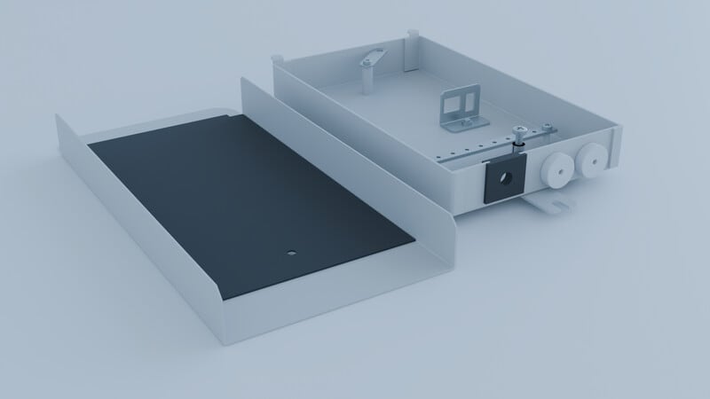 - Alumiininen kotelo kuitujen jatkamista varten