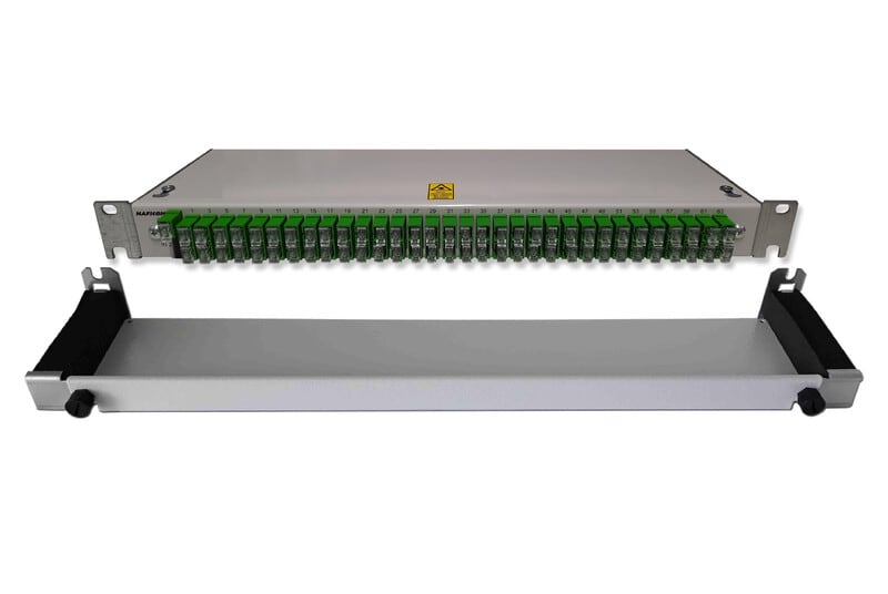 19"" jaotinpaneeli, johon asennettu valmiiksi jakaja, jonka jakosuhde on 1:64. Kuitujen päissä SC-APC liittimet. Pakettiin kuuluu myös kuituohjain vedonpoistolla (7268465)