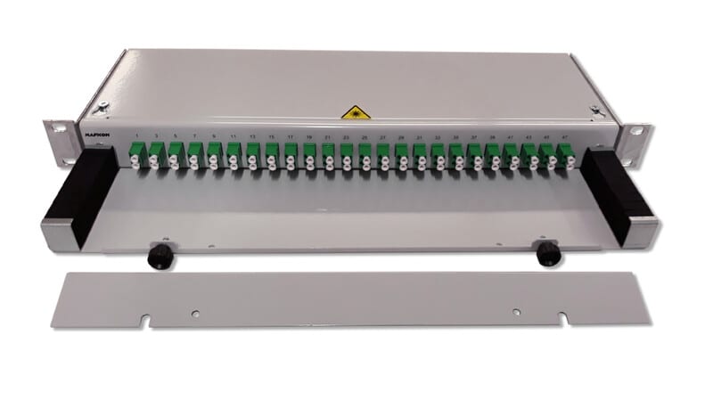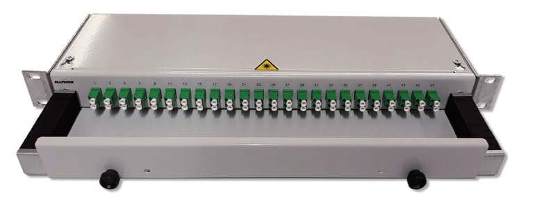 19 tuuman paneeli, johon on valmiiksi asennettu 48 APC-hiottua LC kuituhäntää