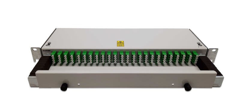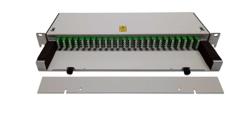 19 tuuman paneeli, johon on valmiiksi asennettu 96 APC-hiottua LC kuituhäntää