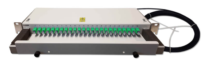Pan. 19 SCA/- HBBX 24ML 5m. Yksimuoto häntäkaapeli, jonka pituus on 5m. Mikrokaapeli on valmiiksi päätetty 19"" paneeliin SC-APC liittimin, joita on 24kpl.
