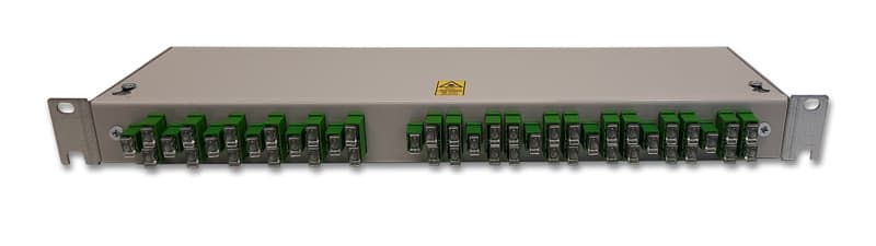 19"" jaotinpaneeli, johon asennettu valmiiksi 6kpl jakajia, jonka jakosuhde on 1:2 sekä 6kpl jakajia, jonka jakosuhde on 1:4. Kuitujen päissä SC-APC liittimet.