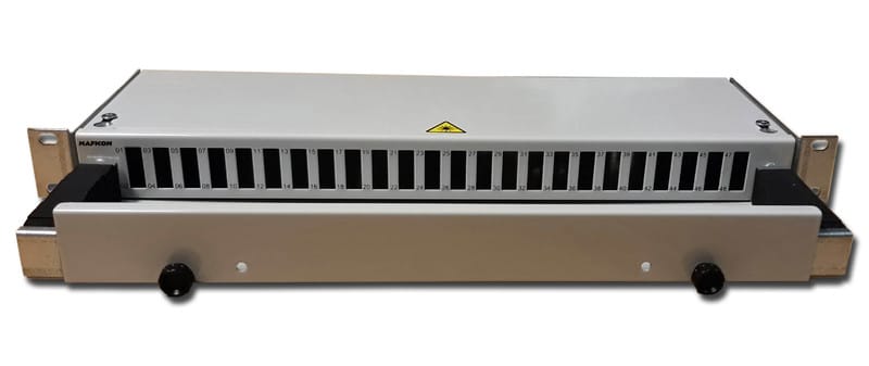 19"" paneeli, johon voi asentaa 24 SC duplex adapteria. Sivuilla vedonpoisto kytkentäkaapeleille ja edessä merkintälista, joka on kiinnitettävissä törmäyssuojaan. Korkeus 1U. Kaapelin voi tuoda takaa sekä vasemmalta, että oikealta.