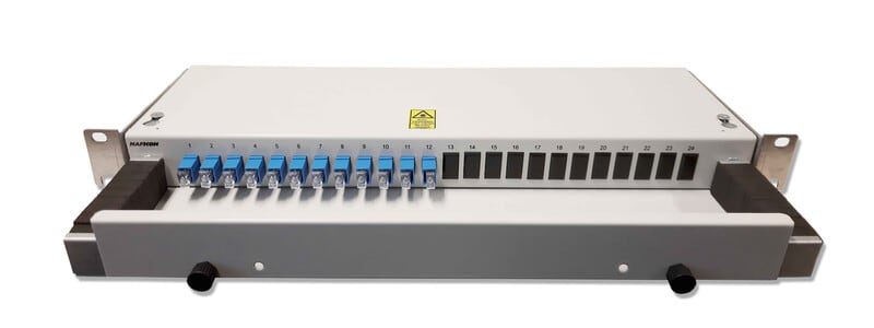 Paneeli 19 SC/- 12SMT 1,5m. 19"" Paneeli, johon on esikytketty 12kpl SC-UPC häntää. Häntien pituus 1,5m.