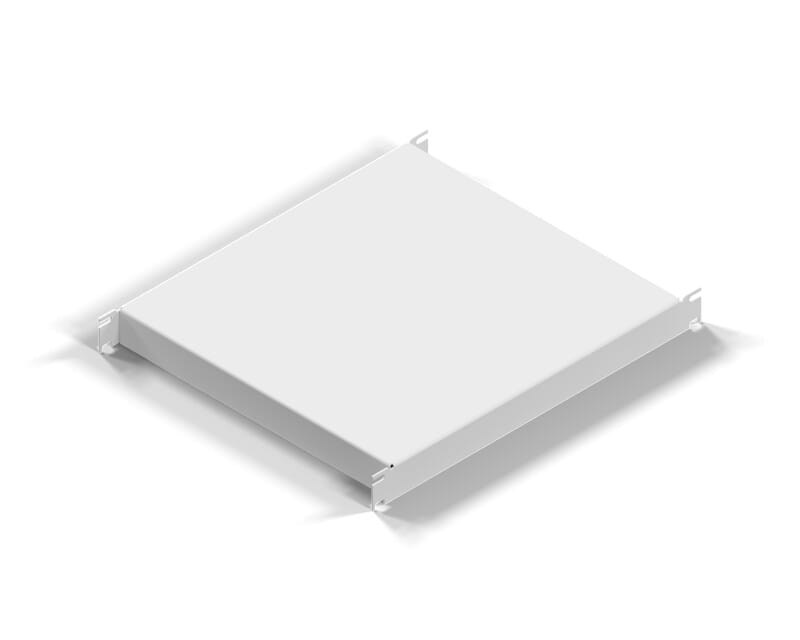 Laitehylly 19\" kytkentätelineisiin. Suurin sallittu kuormitus 50 kg. Korkeus 1U, väri harmaa RAL7035. Sisältää korimutterisarjan.