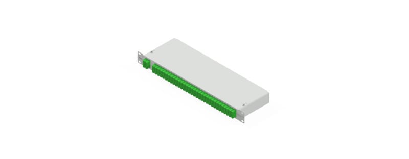 Esikytketty jaotinpaneeli 19":n telineasennukseen. Paneeli sisältää 8kpl 1:16 jaottimia, liitintyyppi LC/APC.