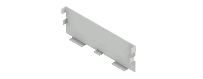 Kuituhyllyn peitelevy. Asennetaan painamalla hyllyn päätyyn.