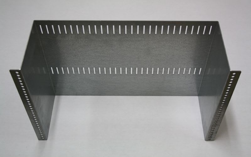 Jatkoslevyteline 19\" kytkentäkaappiin. Jatkoslevyt sijoitetaan telineeseen pystyasentoon.